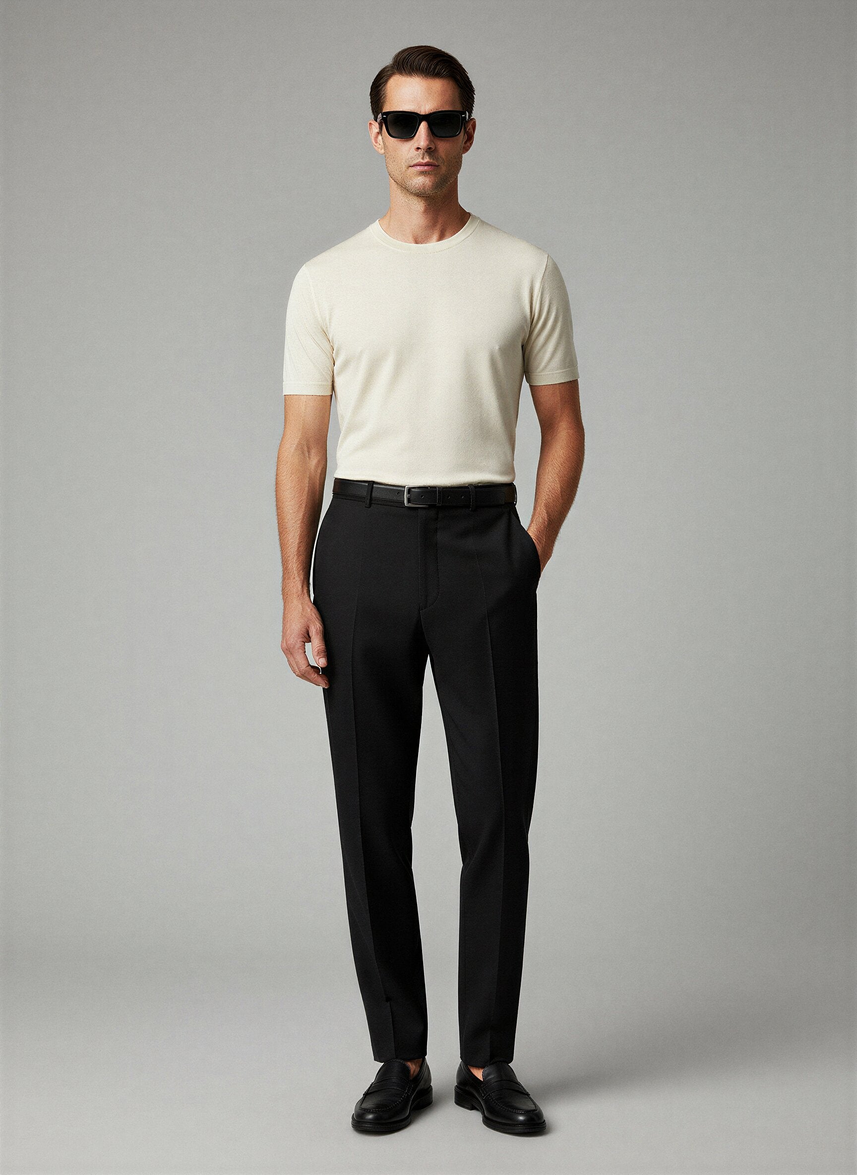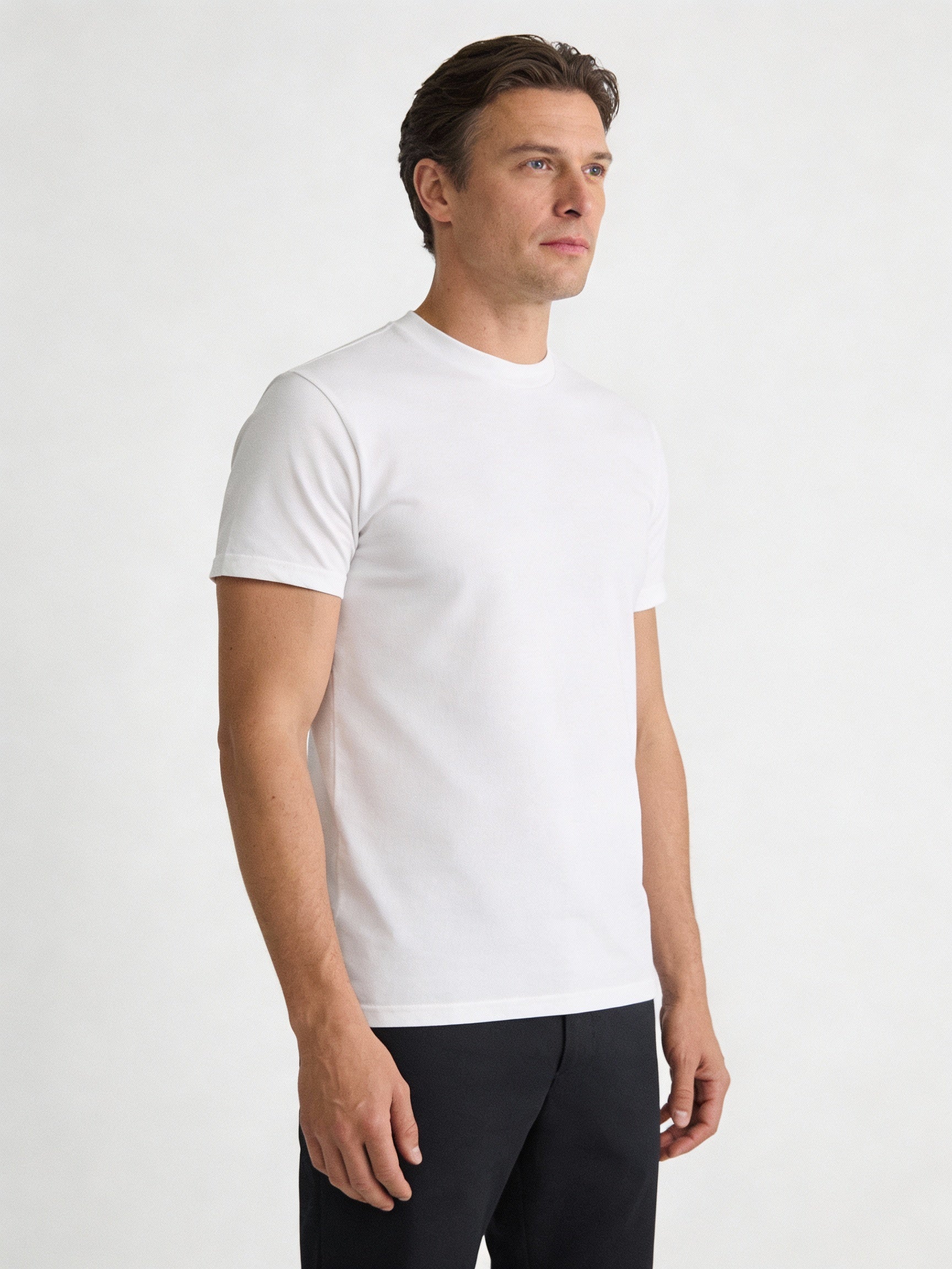 Der klassische Rundhalsausschnitt und der präzise Schnitt sorgen für eine maskuline, perfekt sitzende Silhouette.